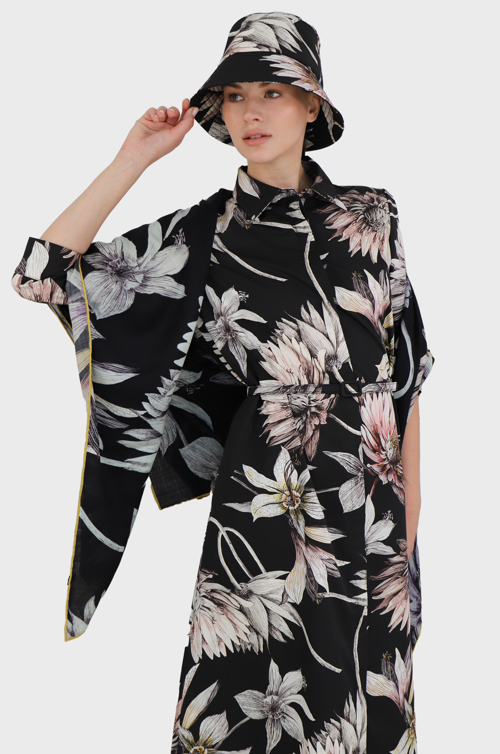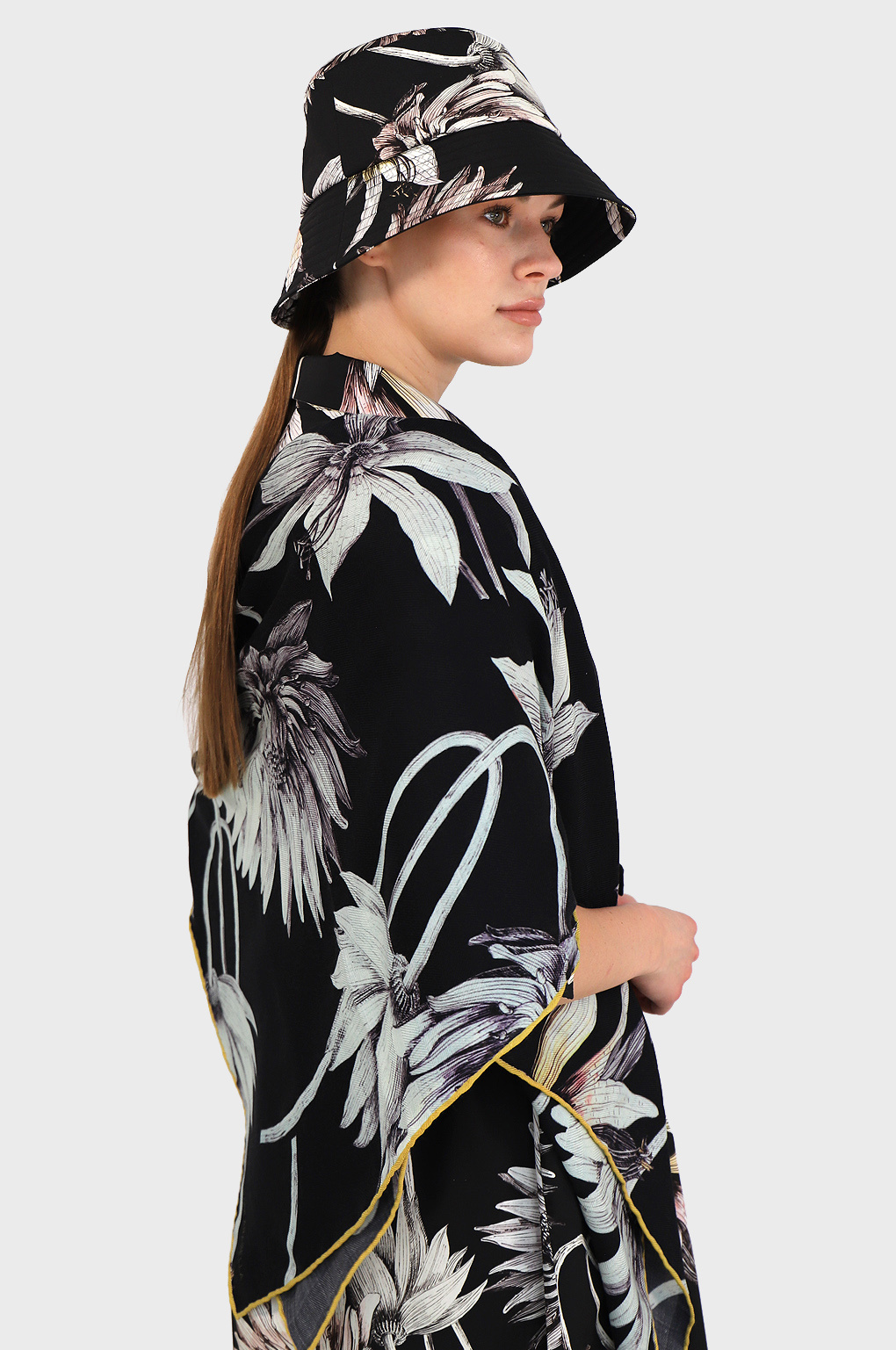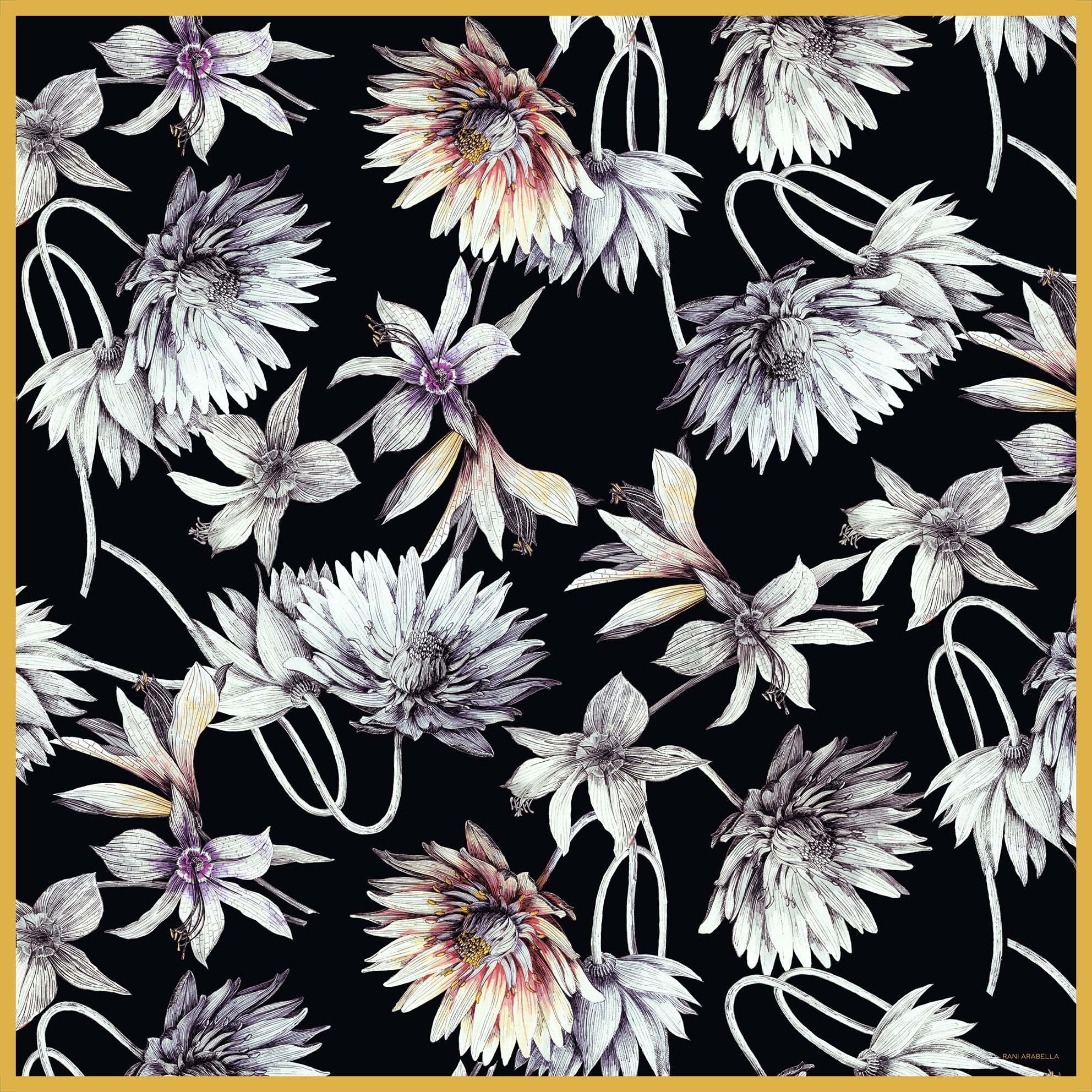 BEAUTIFUL DAHLIA FLOWER CASHMERE SHAWL IN BLACK. HAND MADE IN LAKE COMO, ITALY.