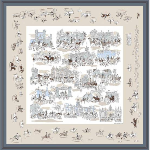 CASHMERE PRINTED SCARF: PALIO DI SIENA: BEIGE-BLUE