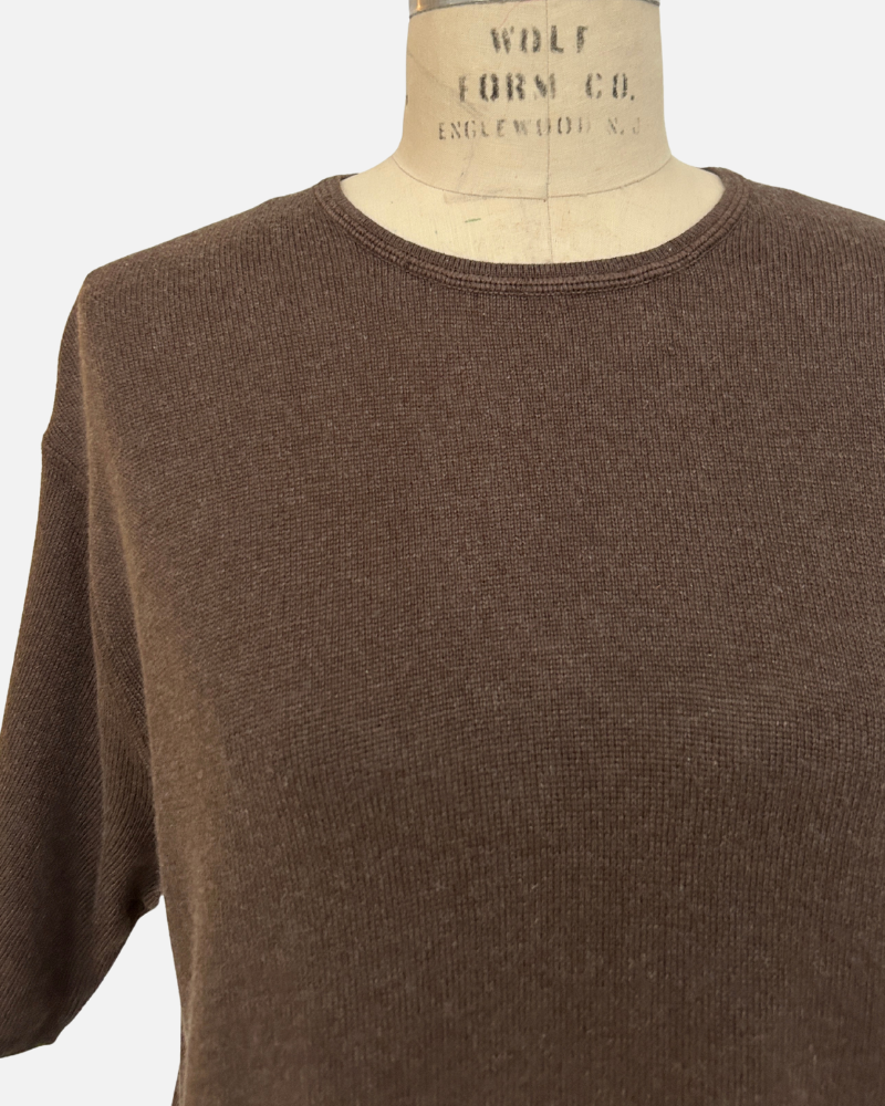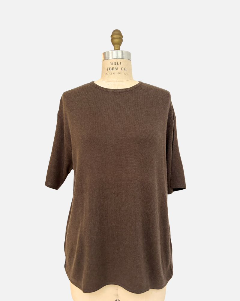 A charcoal co-cashmere T-shirt, offering a soft, lightweight, and effortlessly elegant everyday staple.