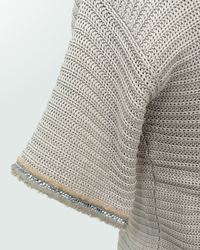 COTTON-SILK SS PULLOVER W/ BEADED FRINGE SLEEVE TRIM: LOTUS