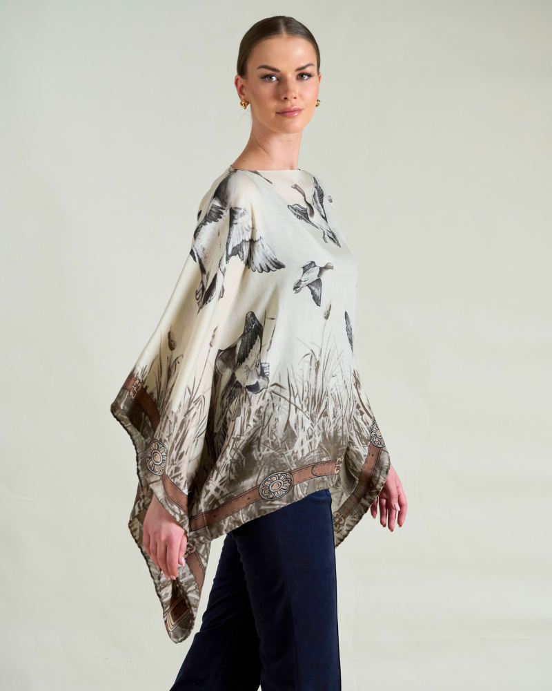 CASHMERE PRINTED PONCHO: DUCK: TAUPE