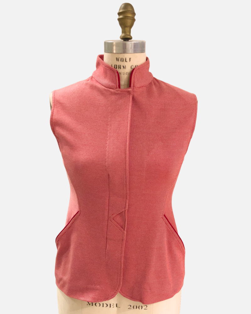 A stylish cotton jersey vest in red and white stripes, offering a modern, tailored look with a comfortable fit.