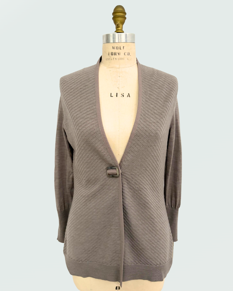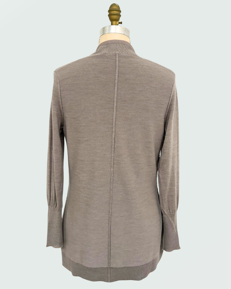 KNIT CARDIGAN WITH GROSGRAIN: TAUPE