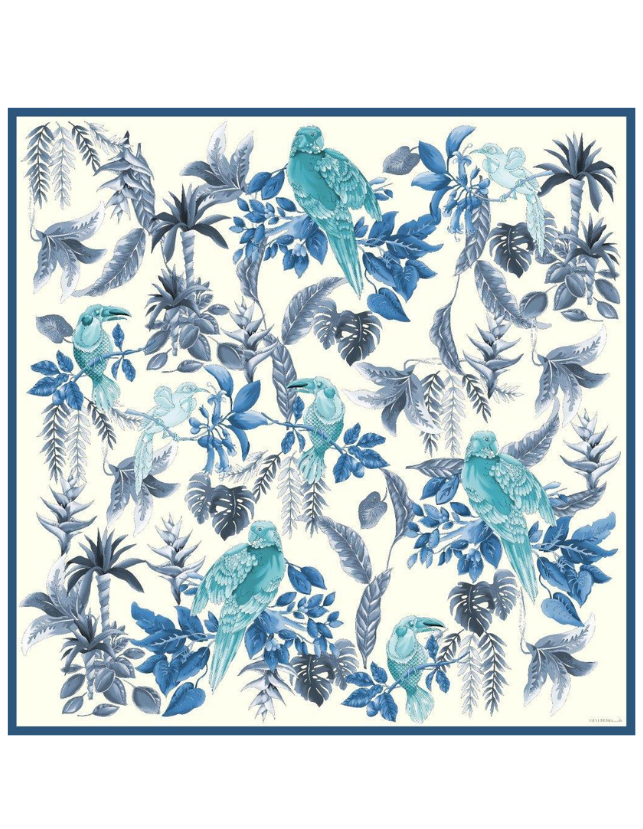 BEAUTIFUL BIRDS CASHMERE PONCHO IN BLUE. HAND MADE IN LAKE COMO, ITALY.