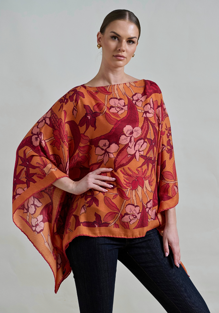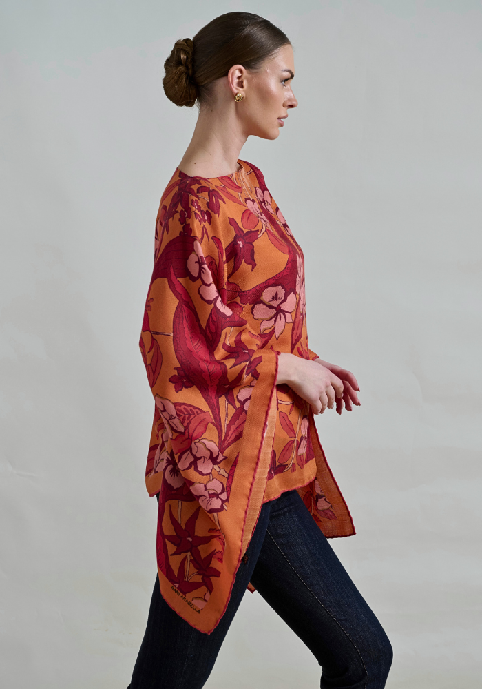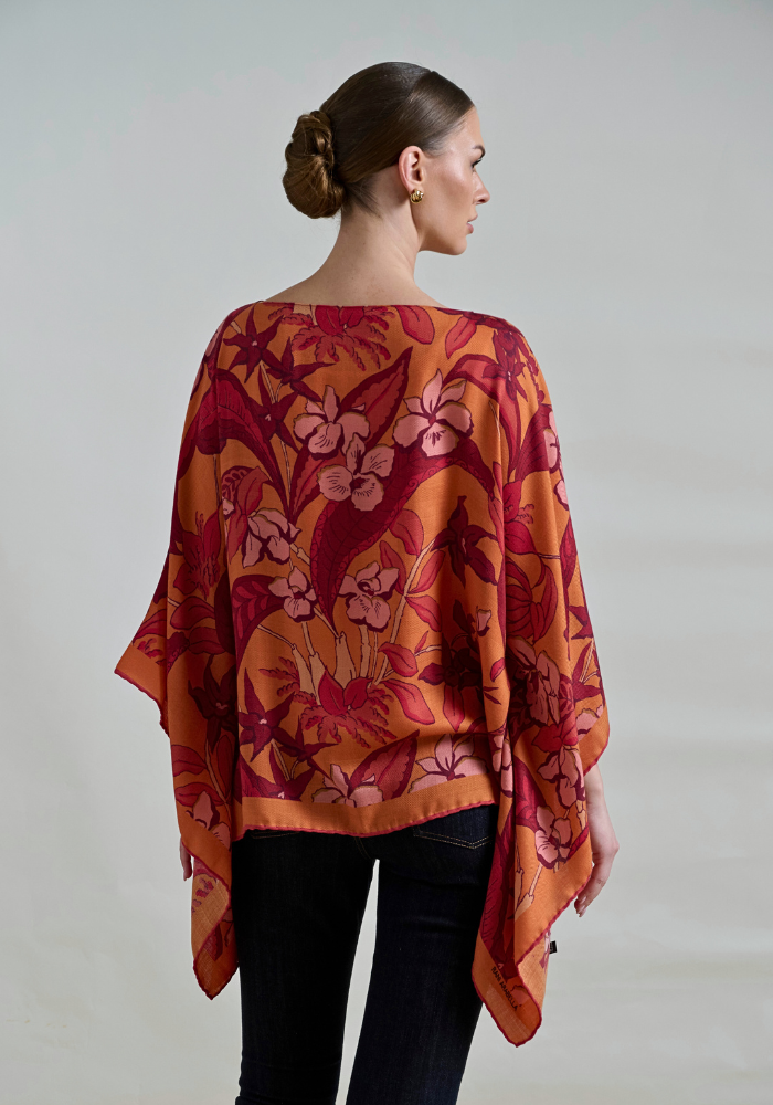 BEAUTIFUL ZANZIBAR CASHMERE PONCHO IN ORANGE. HAND MADE IN LAKE COMO, ITALY.