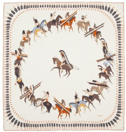 BEAUTIFUL SILK PRINTED SCARF: NATIVE AMERICAN: IVORY COLORS. HAND MADE IN LAKE COMO, ITALY.