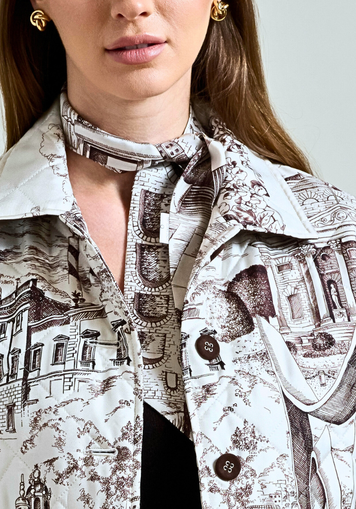 An exquisite silk twilly scarf showcasing a sophisticated green Modern Lake Como print. Perfect for styling as a hair accessory, necktie, or handbag accent. Luxuriously smooth, versatile, and timeless. HAND MADE IN LAKE COMO, ITALY.