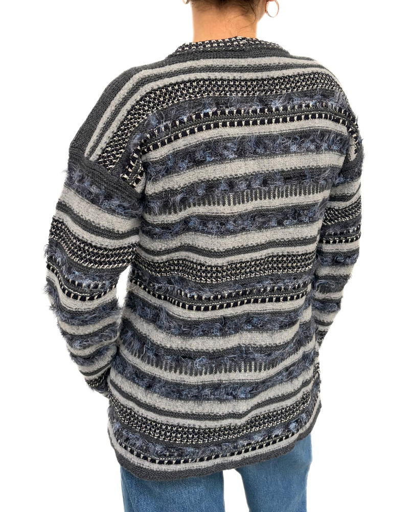 Light and versatile, this striped knit cardigan in soft ivory tones offers cozy comfort with a refined, elegant finish.