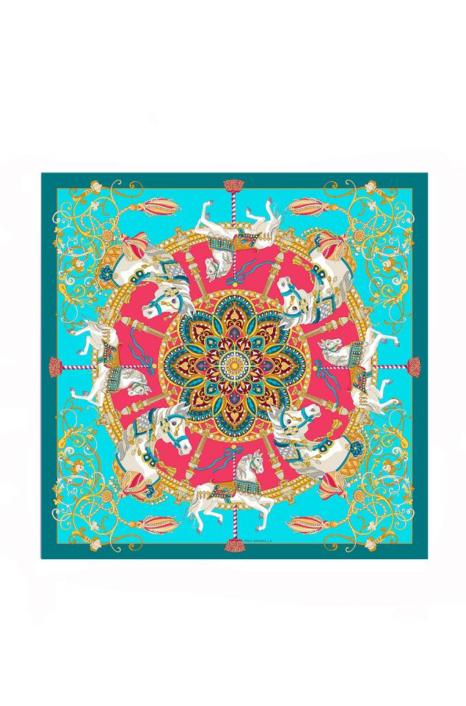 BEAUTIFUL TOY HORSES CASHMERE PONCHO IN TURQUOISE. HAND MADE IN LAKE COMO, ITALY.